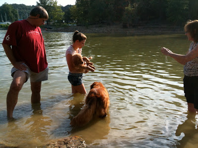 On Saturday, I went for my first swim. It's a Shady Side tradition to go for a dip in the lake on my first day. Andy says these pics look like a southern baptism. I guess he's right. Once we got home, I decided I liked my baby pool much better. We'll work on the lake later.